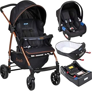 Travel system ou trio costuma ganhar quando o carro entra na rotina desde o nascimento e você quer encaixar o bebê conforto no chassis sem acordar o bebê.